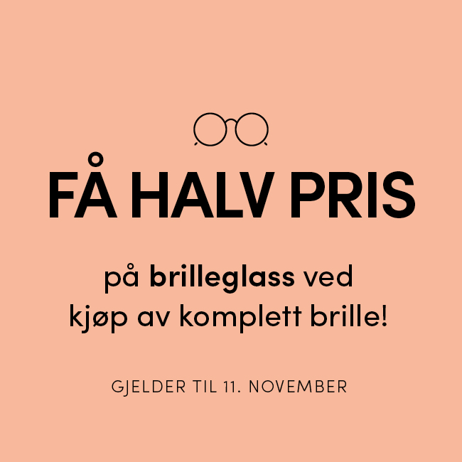 Halv pris på alle brilleglass ved kjøp av komplett brille